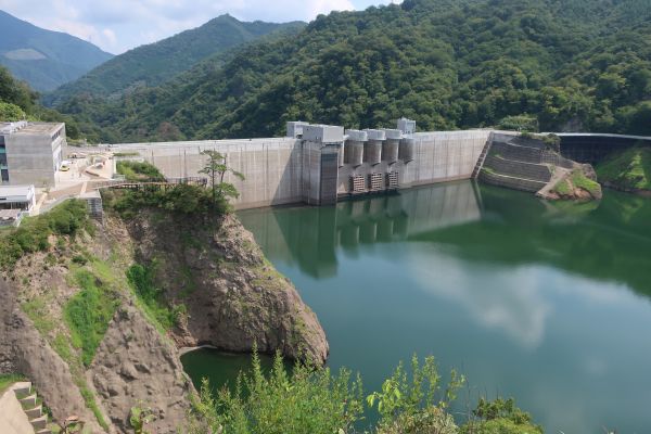 ダムが完成して、上を歩ける様になってるみたいだった。 高低差は 79m。1分ほどで到着する。