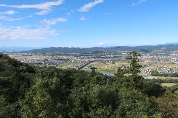 佐野市に行くので市内のラーメン屋で朝食と思ったんだけど 朝食後にSAを出る。予定の30分遅れ。 岩舟JCTから北関東道に入って佐野田沼ICで降りる。 唐沢山レストハウスの前にバイクを停めて、城跡へ向かう。 すぐに虎口があり、その先に井戸があった。 本丸跡に神社があったので参拝する。