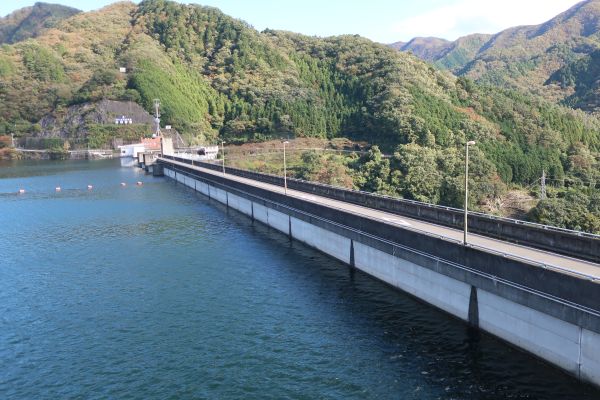 こっちは落ち葉が多いけど、路面は乾いてるし走りやすい。 14時前に草木ダムに到着、コーヒー飲みつつ休憩にする。