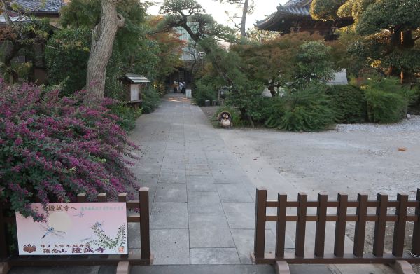 タワーを降りて、公園のベンチで りんご飴を頂く。 祭りのリンゴ飴は昔好きだったんだが、リンゴが古く事が多くて美味しくないので買ってない。 護念山 證誠寺に移動。ここは、童謡にある証城寺の狸囃子のモデルになった寺らしい。
