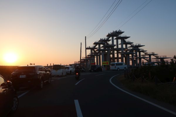 小さい寺だが、鐘や庭や狸塚があったり。 もうすぐ夕日が見れそうだけど、海ほたると迷って富津岬へ行くことにする。 トラウマが残る県道90を走って、16時半前に富津岬に到着した。