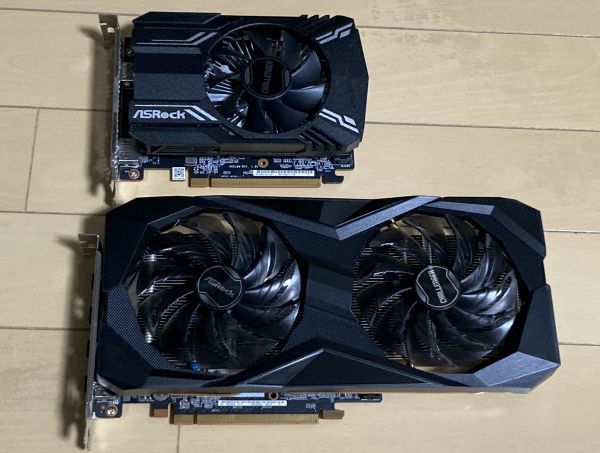 メインPCのビデオカードを、ASRockの RX6400から RX6600に交換した。 去年の5月にビデオカードを交換したのだが、ディスプレイ端子とHDMI端子だけのボードだった。 性能的には問題ないんだけど、どちらのモニタにもディスプレイ端子で接続したいなと常に思ってた。 nVidiaは人気があり高性能で、AMDは安くて省電力な感じ。 今のカード RX6400は GTX1650と同じぐらいの性能になる。 中古でも良いだろうと じゃんぱらで調べると以下な感じだった。 これなら RTX3050を買うのが良さそうだと思った。 でも、今のPCはASRockで揃えてるのでビデオカードもと思ったりしてたら メインPCは20年以上AMD(ATi)を使っていたので、久しぶりに nVidiaと思いきや