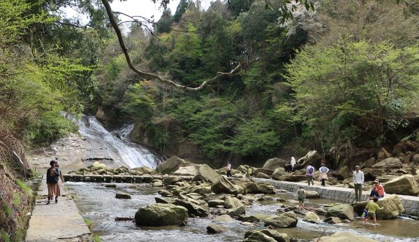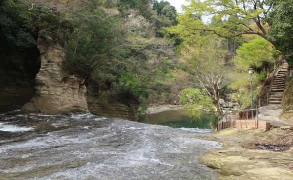 少し走って粟又の滝へ。 滝への階段を降りてくが、遊歩道が新しくなってる。
