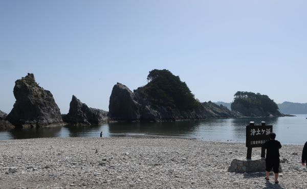 8時半前に出発、まずは近くにある浄土ヶ浜へ。 駐車場は高台にあるので、長い下り坂を降りていく。