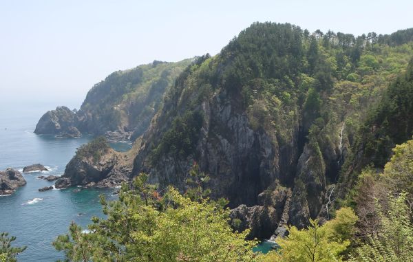 海を観れる場所が南北に広がってて、北端と南端から見る。 少し北上して島越駅へ。