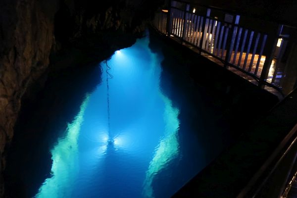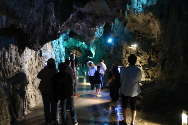 滞在は 30分ほど、それなりに満足できた。 次は龍河洞、県道7が良い道で快走できた。 こちらは人気の鍾乳洞、めちゃ混んでる。 GWの特別コースで、短縮版になってた。