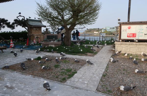 三陸鉄道旅で車窓から見えた神社、山の上にあって良さそうなんだけど フン対策で傘が必要みたいだ、レンタル傘あったので借りて上に登る。