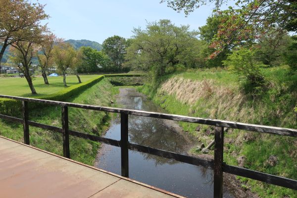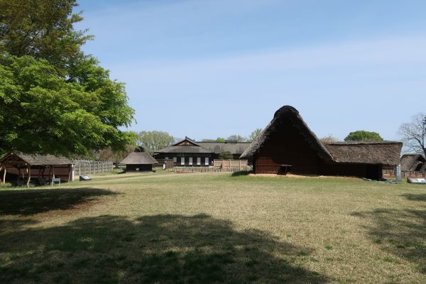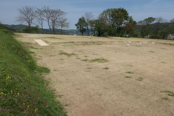 馬屋や倉庫など、色々な建物を再現してあった。 次は九戸城、時間短縮のため高速を使う。 こんな田舎に片側2車線は贅沢、空いてて快適だ。 プレハブのガイドハウスに砂利の駐車場だった。 駐車場が崖下なので、入口まで少し歩く。