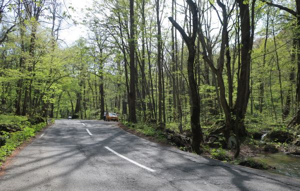 1時間以上滞在して、十和田を出る。 R102を西へ移動。 奥入瀬渓谷は11年ぶり2回目だが、ずっと再訪したいと思ってた。 ここは、緑の森と渓流の近さが素晴らしい。 路駐が多くあり、レンタサイクルが縦横無尽に走ってカオス。