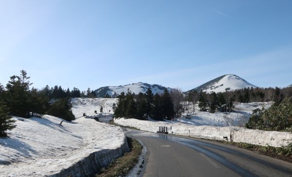 十和田湖に到着。トイレ休憩の後、奥入瀬に戻る。 左折して R103に入り、青森へ向かう。 蔦温泉を過ぎたら車が激減、そして雪が増えてく。