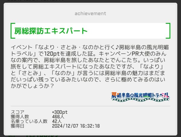 最近は一部イベントで課金すると、プラスアルファの報酬が得られるケースが増えてきおり この称号が欲しすぎたので、帰宅後に1000円払って獲得した。しばらく付けておく予定。 年末年始は帰省する事にしたので、今年最後のツーリングになる予定。 走行距離 217.6km |