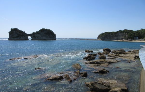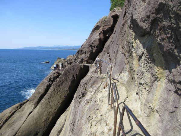 2025紀伊半島ツーリング、5/5-7の話。 --------- 6時に起床。 松阪ICまで走って伊勢自動車道へ、戻った分を高速道路で取り返す。 紀伊半島の山の中を走っていく。森が深い。 終点の熊野大泊ICで降りて、鬼ヶ城には9時前に到着した。 バイクを置いて、まずは土産を物色。 鬼ヶ城といっても山城跡を歩くのではなく、海蝕された海沿いを歩く感じ。