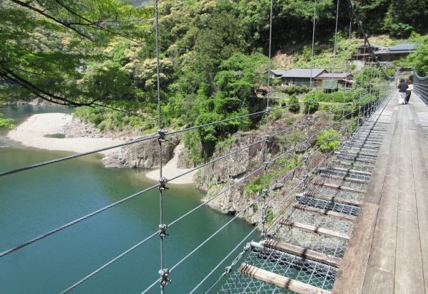 川沿いまで降りて上流側に少し歩くと吊り橋があったので渡ってみる。