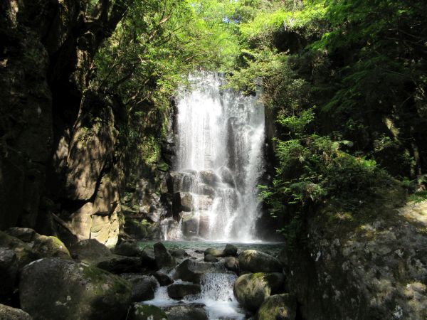 遊覧ボートがあったので乗れるか聞くと、予約で一杯だが一人ならOKとのこと。 13時過ぎに駐車場に戻って来た。 観光候補地として、玉置神社・谷瀬の吊り橋・笹ノ滝をピックアップしてたが 内陸から海側へ移動し、桑ノ木の滝へ。 壁一面に広がる滝は、小さいながらも迫力があって良かった。