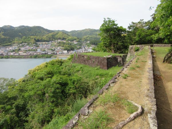 観光客はちらほら。道中、何人かとすれ違った。 バイクに戻って川沿いを下り 新宮市へ。 新宮城跡の駐車場に到着したのは14時半過ぎ、日陰にバイクを停める。