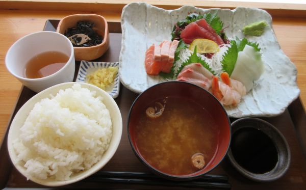 昼時なので、併設のレストランに寄ってみる。 少し迷って、他で食べようと移動する。 道の駅すきみに駐車、レストランへ。 猪豚うどんだと負けた気がするので、刺身定食にした。
