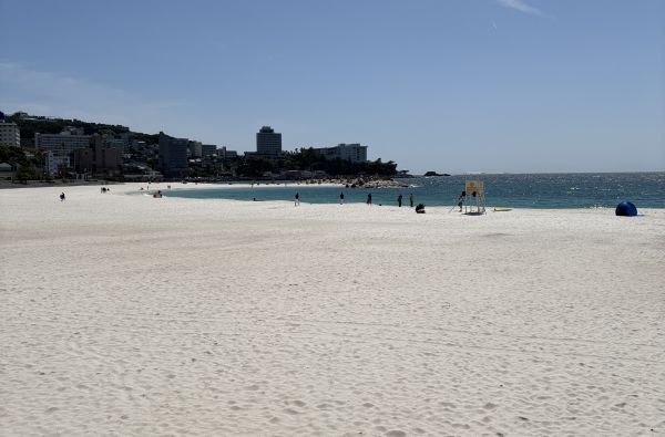 ここも定番なんだけど、駐車場が無かったり観光に不便だからか 次に白良浜へ。白浜の由来でもある白い砂浜。
