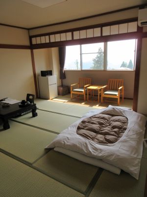 刺身は鰆とタコ、美味しかった。 ビールの次は日本酒、水尾 辛口吟醸。 野沢菜は大好きな事もあり、どこの宿でも美味しい。 ご飯と味噌汁で〆て、デザートは団子だった。 食事会場で食べてるのは、自分以外はカップル1組だけだったが 部屋に戻ってテレビ見つつ横になってたら寝てて、20時過ぎてた。