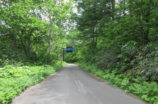 昨日の六軒清水は宿で飲んだので、空の水筒に水を入れる。 温泉街からスキー場を抜けて、奥志賀スーパー林道(県道502 奥志賀公園栄線)へ。