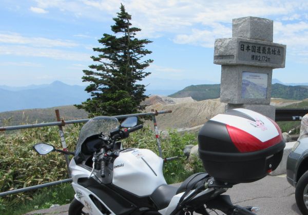 長丁場なので、1時間ほど走ったところにあった橋で休憩する。 県道502が終わって、次は県道471へ。 R292に入り、渋峠を過ぎて11時前に国道最高地点に到着した。