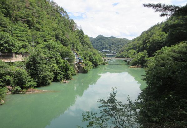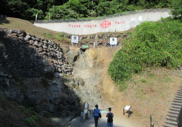 天ぷら、刺身、そば、角煮と、それぞれ美味しかった。 道の駅を出てR148を北上、新潟に入ると暑くなってくる。 フォッサマグナパークの駐車場にバイクを停める。 駐車場から少し歩くと、東西の地層が露呈している箇所へ。
