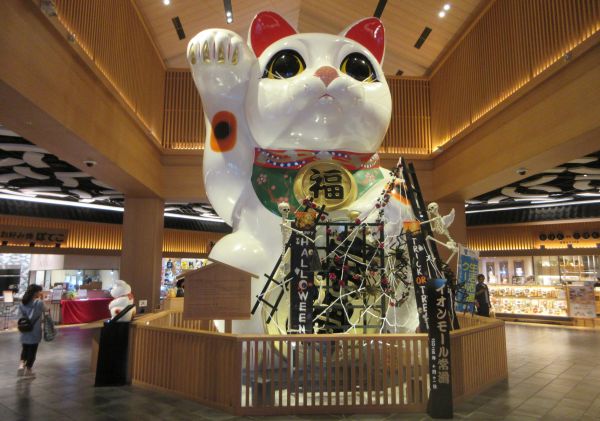 ここで夕飯予定だったが、腹減ってないので酒と惣菜を購入する。 招き猫を買おうと思ってたが、常滑デザインはデカいのしかなく 外に出るとレーダーにはないが小雨が降ってた。 まずは到着ビール、そして大浴場へ。 夜中に起きて夜風呂、グレートレースを観てから寝た。 --------- 駐輪 :敷地内の平面駐車場 走行距離 463km --------- 6時に起床して朝風呂へ。貸切状態だ。 風呂の後に朝食会場へ、座席は半分ぐらいの埋まってる。 バイキング朝食にも慣れてきており、腹いっぱいは食べないよ。 台風が近づいてるので、早めに戻ろうと予定よりも早く8時前に出発。 まずは近所のとこにゃんへ、残念ながら工事中で網がかかってた。